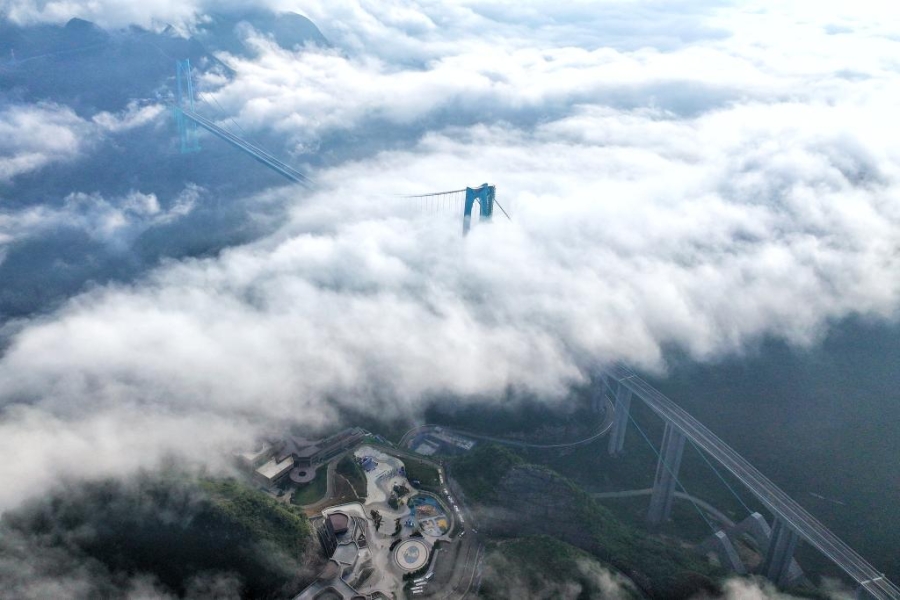 ويمتد الهيكل البالغ طوله 2890 متراً فوق وادي هواجيانغ الكبير، الذي يطلق عليه اسم «شق الأرض»، وهو أحدث إضافة إلى شبكة البنية التحتية سريعة التوسع لثاني أكبر اقتصاد في العالم.