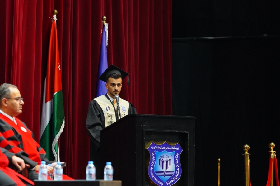 في هذا اليوم المفعم بالفخر والفرح، يسعدني ويشرفني أن أرحب بكم أجمل ترحيب في رحاب جامعتكم – جامعة عمّان الأهلية، أولى الجامعات الخاصة في الأردن، حيث نحتفل بتخريج نخبة متميزة من طلبة كليات: