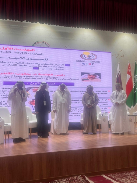 وشارك بالجلسة ابضا الدكتور عبدالله الشريكة مدير مركز تعزيز الوسطية بوزارة الأوقاف الكويتية وعضو مجلس الحكماء التنسيقي والأوربي مدير فريق تعزيز الوحدة الوطنية بالكويت وتناول اهمية تعزيز الحوار المجتمعي وحاجته إلى عدة معطيات منها القاسم المشترك بين دول الخليج - في اللغة - الدين - التاريخ واجاب على تستؤلات عن ماهي الإمكانية لحماية مكتسبات مجتمعاتنا الخليجية وحماية الأجيال المتعاقبة من الأفكار الدخيلة والمتطرفة ؟ .