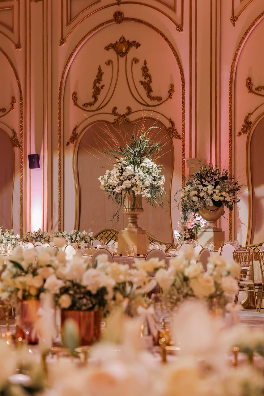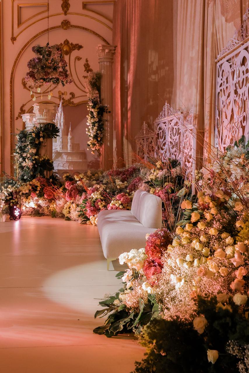 على مدى أشهر من التحضير، عمل فريق آدم عفارة على تنفيذ رؤية بصريّة شاملة، حملت توقيعه الإبداعي المعروف عالمياً، مع ديكورات خاصة وصلت من ستّ دول، وأكثر من 40 ألف زهرة طبيعية زيّنت السقف والقاعة بالكامل، فحوّلت المكان إلى ما يشبه حديقة سماوية معلّقة تغمرها الأضواء والورود من كل جانب.