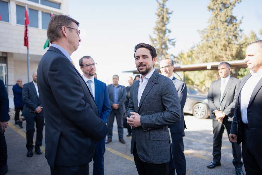 ورافق سمو ولي العهد خلال الزيارة، وزير العمل رئيس مجلس إدارة مؤسسة التدريب المهني خالد البكار، والسفير الألماني في الأردن بيرترام فون مولتكه، ومدير مكتب سمو ولي العهد زيد البقاعين، ومدير بنك التنمية الألماني في الأردن ماثياس شميدت - روزن.