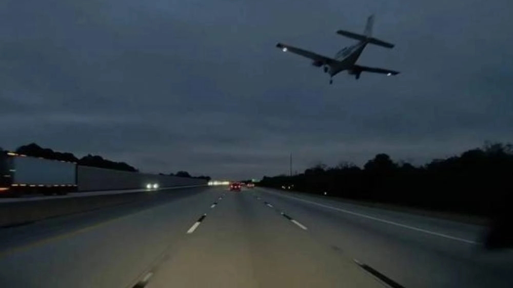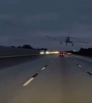 وتظهر لقطات الطائرة وهي تهبط اضطرارياً على الطريق المزدحم خلال ساعة الذروة، حيث صدمت مؤخرة السيارة ثم ارتدت إلى يسارها محدثة شرارات.