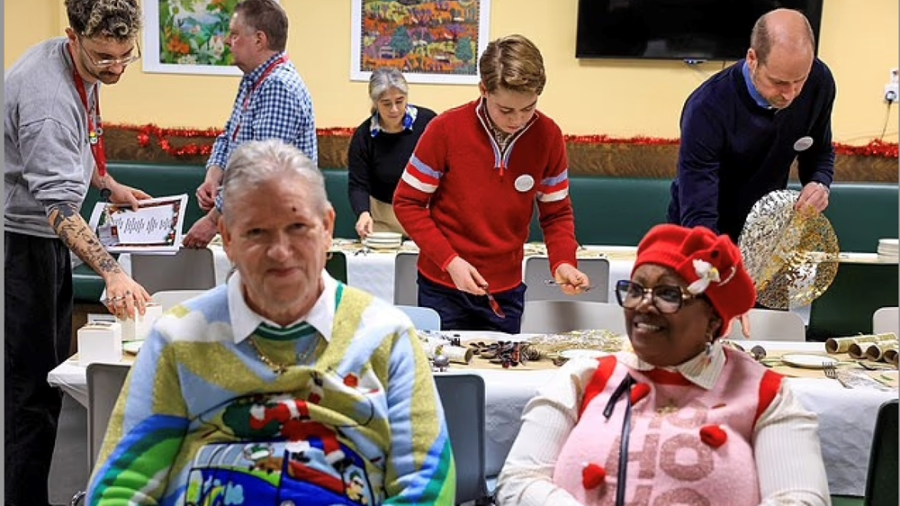 اصطحب الأمير وليام ولي عهد بريطانيا، ابنه الأكبر الأمير جورج إلى جمعية خيرية للمشردين في العاصمة لندن حيث ساعدا في إعداد غداء عيد الميلاد للمحتاجين.