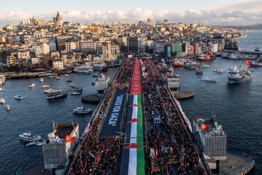 أفادت السلطات التركية بأن أكثر من 520 ألف شخص شاركوا في تظاهرة وسط مدينة إسطنبول تضامنا مع قطاع غزة وفلسطين.