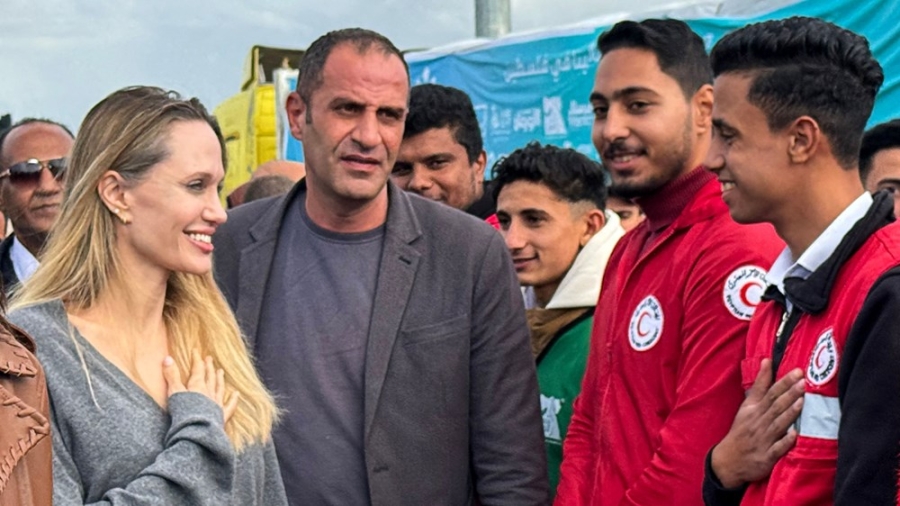 قامت نجمة هوليوود أنجيلينا جولي، بزيارة إلى الجانب المصري من معبر رفح الحدودي مع غزة، الجمعة، حيث تحدّثت إلى أعضاء في الهلال الأحمر وسائقي شاحنات ينقلون المساعدات الإنسانية إلى القطاع.