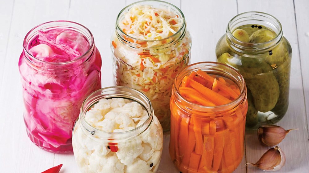 تشمل الأطعمة المخمَّرة: الكيمتشي والملفوف المخمَّر «ساوركراوت»، وهي غنية بالبروبيوتيك الذي يعزّز صحة الجهاز الهضمي. هذه الأطعمة تساعد على توازن البكتيريا النافعة في الأمعاء، ما ينعكس إيجاباً على المناعة والهضم والصحة العامة.