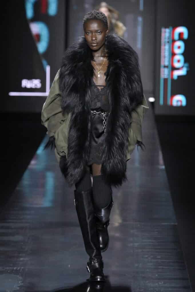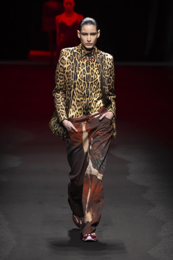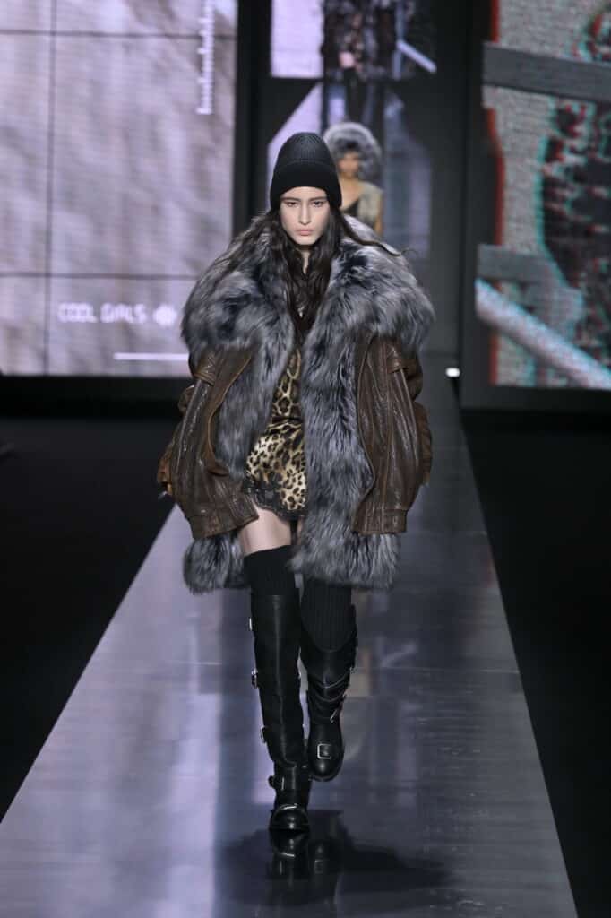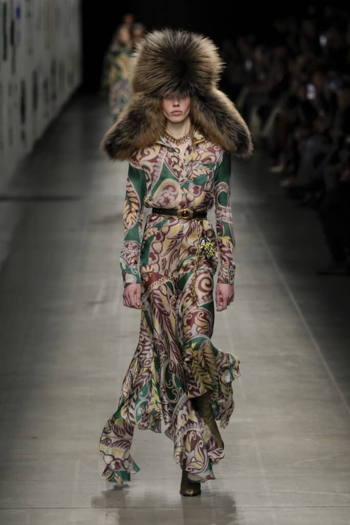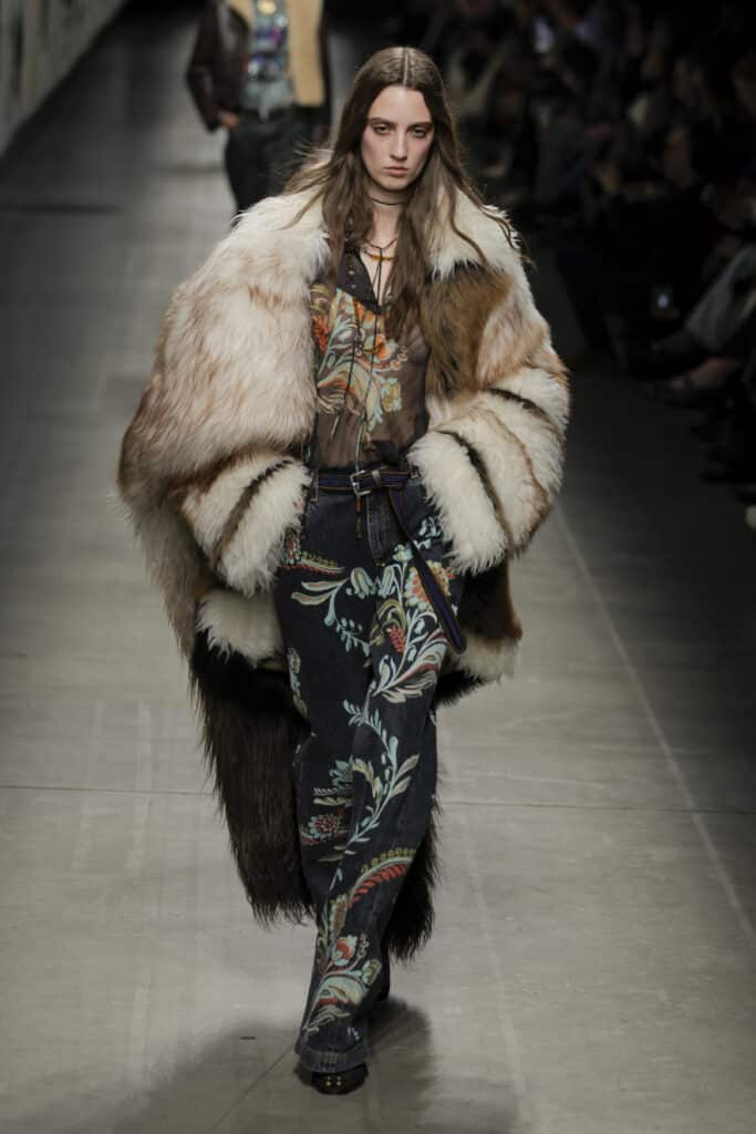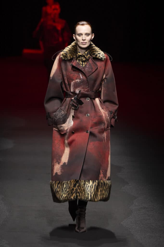 ومع التكرار والملاحقة في كل مكان، خطر على بال روبرتو كافالي هذا الموسم أن يقذف تفصيله صغيرة وجديدة وهي الفرو ذو طبعة الفهد، لكن رأينا أيضًا هذه التفصيلة في مجموعات عدة. وعلى عكس أسابيع الموضة في نيويورك ولندن هذا الموسم؛ يتوجب على محبين الأزياء الإيطالية أن يتحلوا بالعصرية والابتعاد عن الكلاسيكية عند تنسيق ملابسهم مع رفع شعار الشعور بالدفء أولًا. حيث شجع المصممون أيضًا على ارتداء الملابس المبطنة بالفرو! فهو بالخارج وبالداخل وبكل مكان في ملابس هذا الموسم.