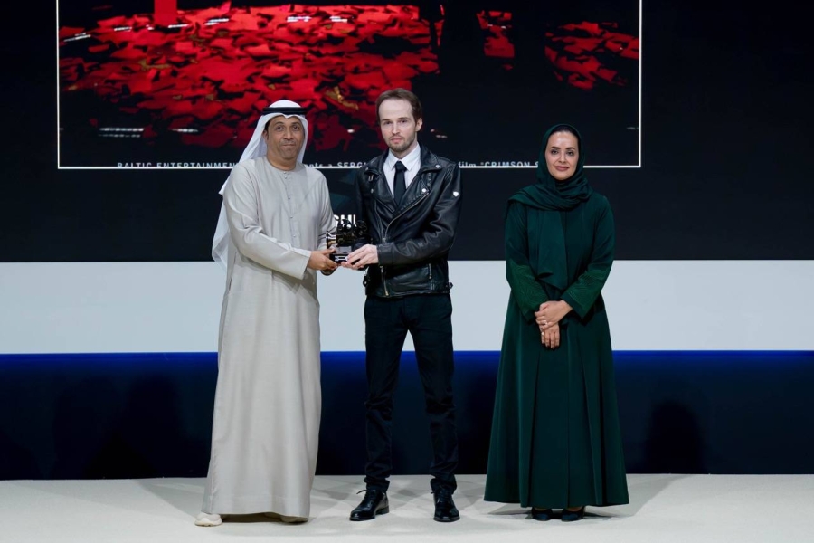 وكرم طارق سعيد علاي، مدير عام المكتب الإعلامي لحكومة الشارقة، وعلياء السويدي، مدير المكتب، الفائزين في الفئات الأربعة للجائزة، وهي: الفنون السينمائية، والمؤثرات البصرية، والفيلم الوثائقي، والفيلم القصير.
