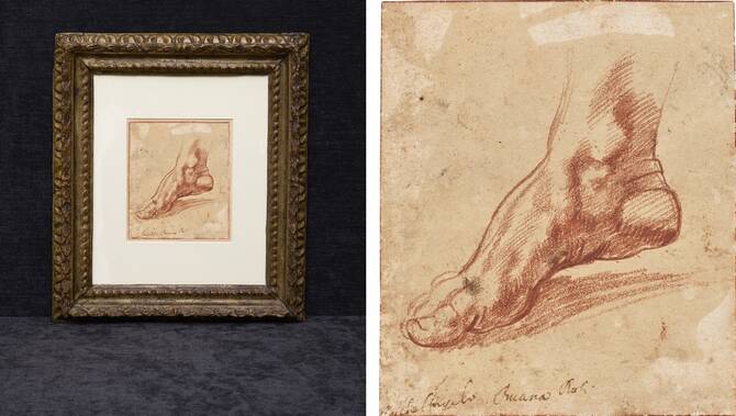 والرسمة الصغيرة لقدم المرسومة بالطبشور الأحمر واحدة من حوالى 50 نموذجا أنجزها مايكل أنجيلو لكنيسة سيستين، وهي من أشهر أعماله إلى جانب تمثالي داود وبييتا (العذراء والمسيح).