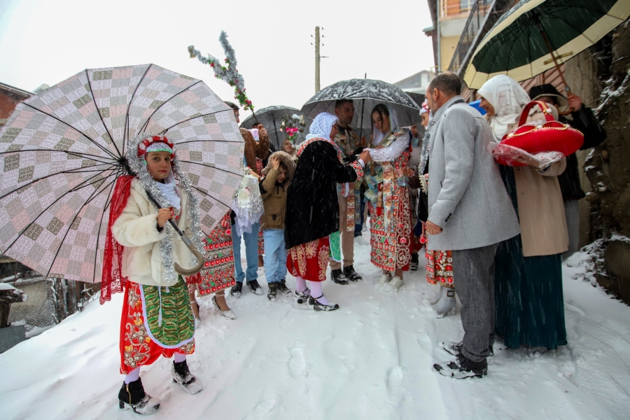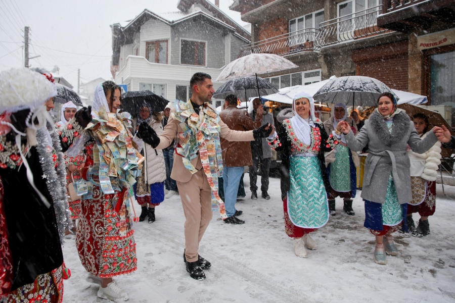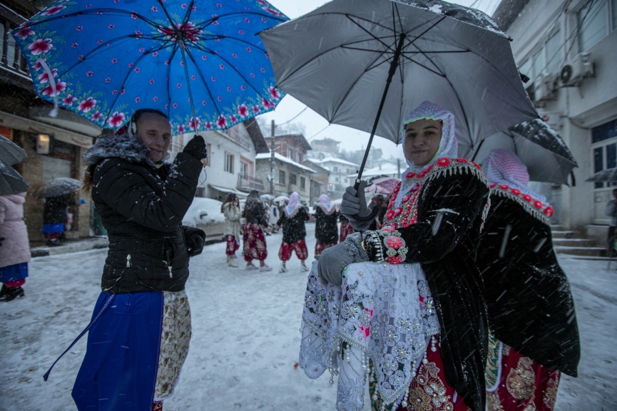مقتطفات من حفلة زفاف في بلدة غوتسه ديلتشيف في بلاغويفغراد البلغارية، حيث تُطلي العروس وجهها باللون الأبيض وتُزيّنه بزخارف ملونة، رمزًا لانتقالها إلى حياة جديدة وانفصالها عن عائلتها، وذلك ضمن تقليد "جيلينا" العريق لحفلات الزفاف، وتُعد هذه الأعراس فريدة من نوعها في ريبنوفو والمناطق المحيطة بها، حيث تستمر ثلاثة أيام، وبغض النظر عن المطر أو الثلج، يلتزم القرويون بالعادات والتقاليد، ويرتدون الملابس التقليدية، ويحتفلون على وقع الموسيقى المحلية.
