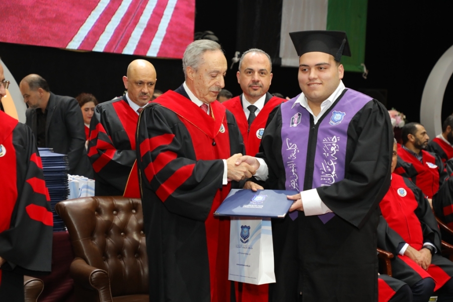 رعى دولة الاستاذ عبدالكريم الكباريتي رئيس مجلس أمناء جامعة عمان الاهلية مساء أمس 16-2-2026 على مسرح الأرينا احتفال الجامعة لليوم الثاني بتخريج طلبتها للفصل الاول 2025-2026 من الفوج (33) لكليات : " الهندسة، الصيدلة، تقنية المعلومات، التمريض، العمارة والتصميم، والعلوم الطبية المساندة والتكنولوجيا الزراعية " ، بحضور الاستاذ الدكتور ساري حمدان رئيس الجامعة ، والاستاذ عمر الحوراني نائب رئيس هيئة المديرين ، وعدد من أعضاء مجلس الأمناء ، ونائب رئيس الجامعة الاستاذ الدكتور احمد حمدان " عميد كلية طب الاسنان " ، ومساعد الرئيس لشؤون الاعتماد والجودة والتخطيط الدكتور إياد شعبان، والسادة العمداء ، وأعضاء الهيئة التدريسية ، وعدد من أعضاء الهيئة الإدارية ، وحشد كبير من ذوي الطلبة الخريجين والمدعوين .