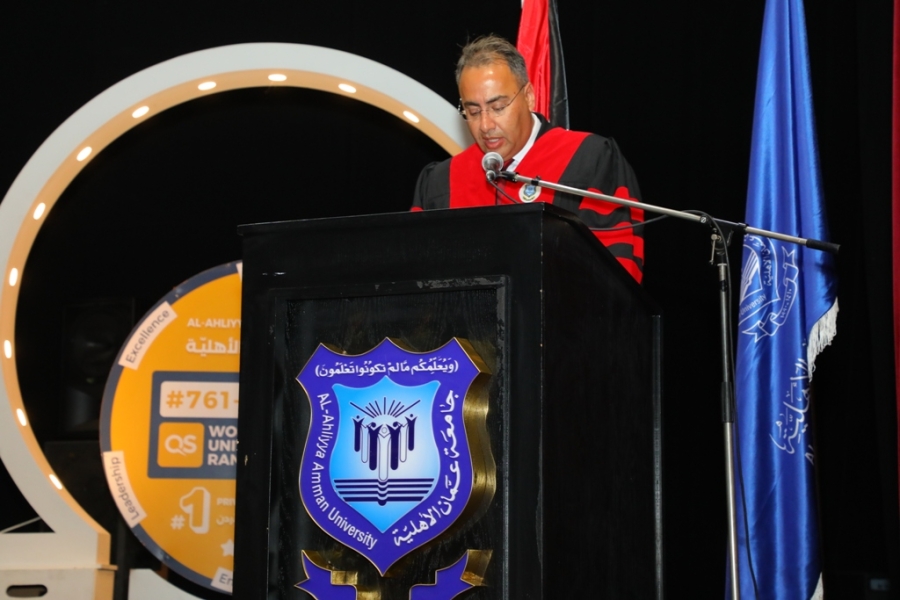 واختتم كلمته بالقول : إننا في جامعة عمّان الأهلية، ونحن نحتفي بتخريج فوجٍ جديد من أبنائنا وبناتنا، نؤكد فخرنا واعتزازنا بقيادتنا الهاشمية الحكيمة، وبالمواقف الوطنية المشرفة لصاحب الجلالة الملك عبد الله الثاني ابن الحسين، حفظه الله، والتي تجسّد إرادةً وطنيةً راسخة تعبّر عن وحدة الأردنيين على اختلاف أصولهم ومنابتهم.وفقنا الله جميعاً لخدمةِ جامعتِنا وخدمةِ أردننا الغالي في ظل حضرة صاحب الجلالة الهاشمية الملك عبد الله الثاني ابن الحسين وولي عهده الأمين.