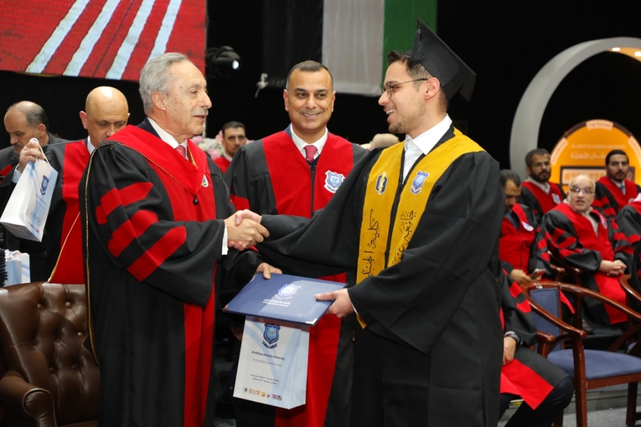 أقف أمامكم اليوم ممثلاً لزملائي الخريجين، ممتناً لهذه اللحظة العظيمة، متقدماً بجزيل الشكر لدولة الرئيس عبد الكريم الكباريتي رئيس مجلس الأمناء، وللأستاذ الدكتور ساري حمدان رئيس جامعة عمّان الأهلية، ولعطوفة الدكتور ماهر الحوراني رئيس هيئة المديرين، والسادة عمداء الكليات وأعضاء الهيئتين التدريسية والإدارية، على ما بذلوه من جهد ودعم حتى نصل إلى هذا اليوم.
