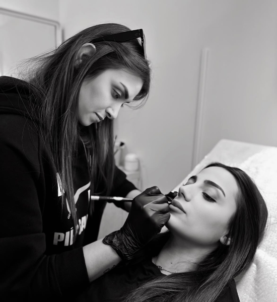 أما بالنسبة لتاتو الشفاه، فأنا أفضّل أن يكون طبيعياً مع دمج الكونتور داخل اللون، وغالباً نستخدم درجات الـLight Pink لإظهار الشفاه بلون صحي وطبيعي من دون تحديد حاد.