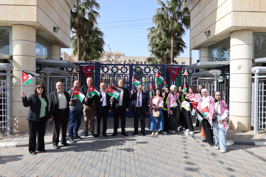 وانطلقت الفعاليات منذ ساعات صباحاليوم الخميس 16-4-2026، حيث ازدانت مداخل الجامعة وساحاتها بالأعلام الأردنية، فيما جرى توزيع الأعلام على الحضور، بالتزامن مع بث الأناشيد الوطنية التي أضفت طابعاً حماسياً عبّر عن الفخر والاعتزاز بهذه المناسبة.