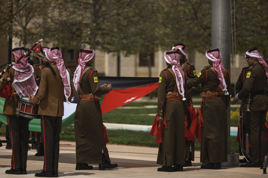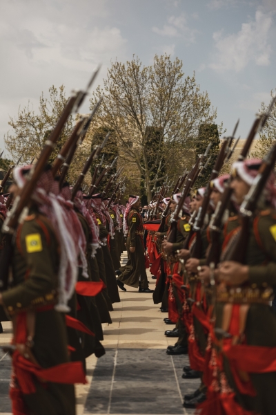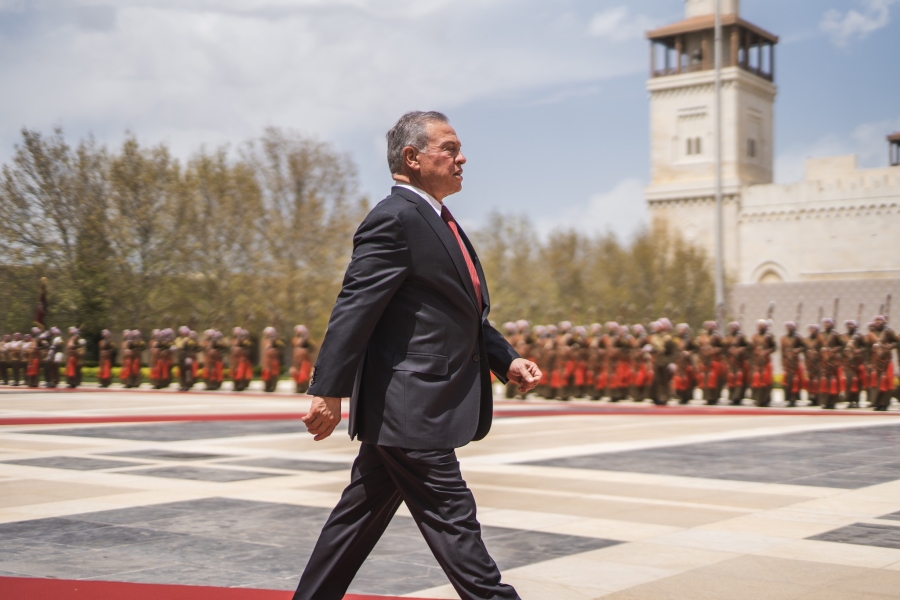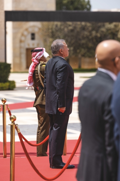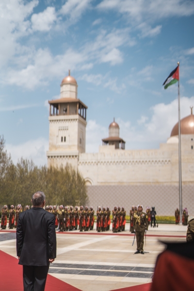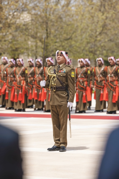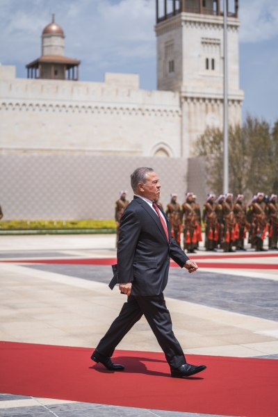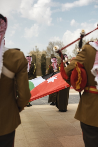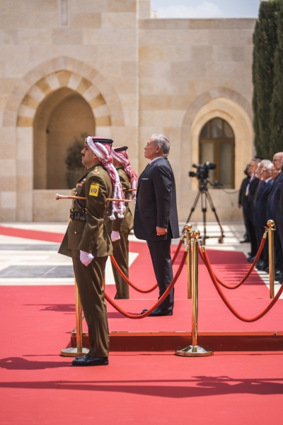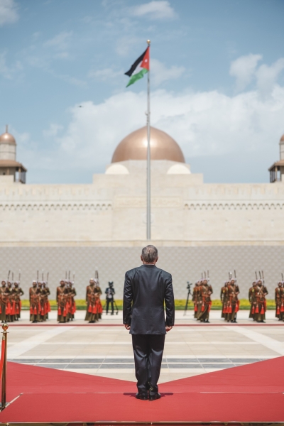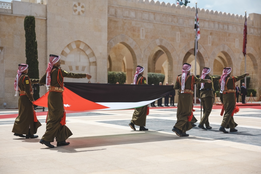 شهد جلالة الملك عبدﷲ الثاني في قصر الحسينية، اليوم الخميس، مراسم رفع العلم، بمناسبة اليوم الوطني للعلم الأردني، التي تصادف السادس عشر من نيسان من كل عام.