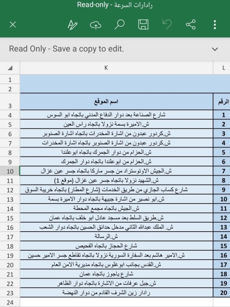 وتاليا قائمة بمواقع الأنظمة التي سيتم تشغيلها ضمن حدود أمانة عمان: