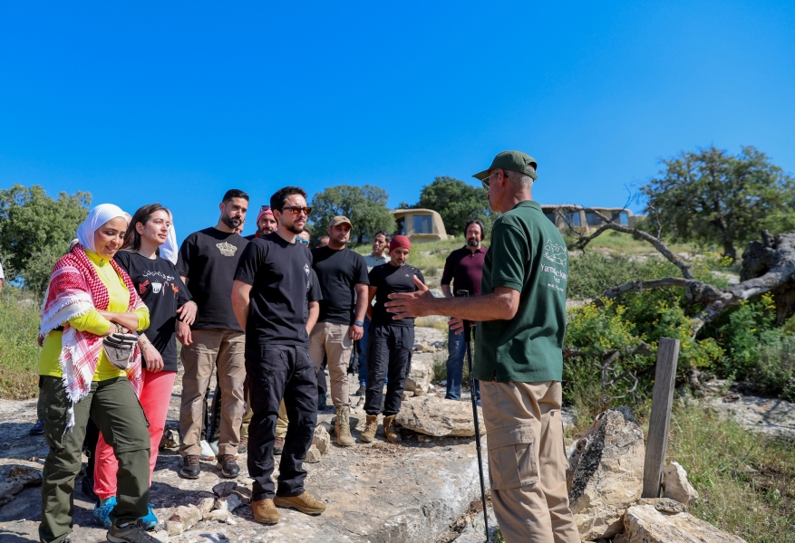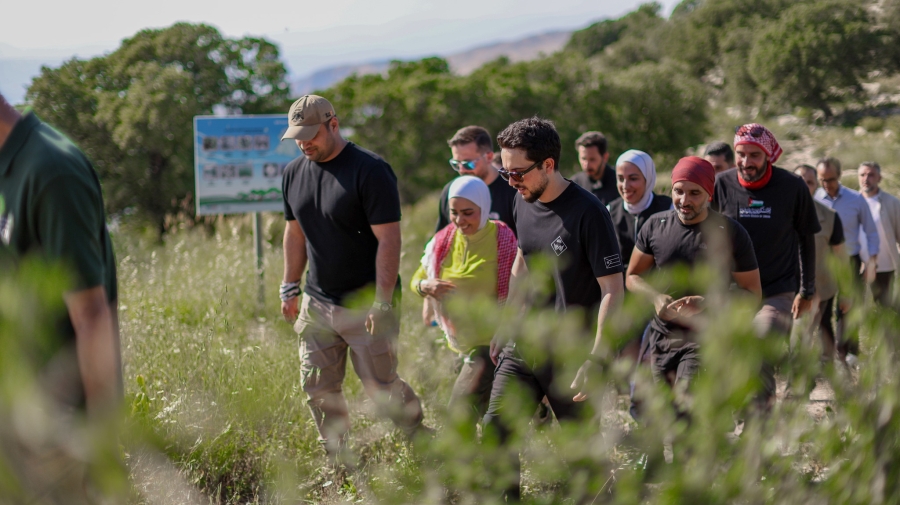شارك سمو الأمير الحسين بن عبدﷲ الثاني ولي العهد، الأربعاء، ناشطين متخصصين في السياحة البيئية والداخلية، في مسير طبيعي بمحمية غابات اليرموك للمحيط الحيوي في محافظة إربد.