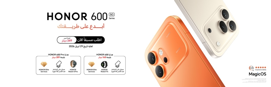 الأردن - عمان – 23-4-2026 : كشفت HONOR، العلامة الرائدة عالميًا في الأجهزة المدعومة بالذكاء الاصطناعي، عن سلسلة HONOR 600 Seriesالتي تضم طرازي HONOR 600 وHONOR 600 Pro، خلال حدث إطلاقٍ حصري أقيم في عمّان، بحضور الإعلاميين والشركاء والمؤثرين وعشاق التقنية، لتقديم نظرة أولى متعمقة على أحدث ابتكاراتها.